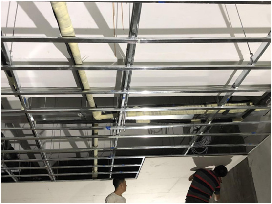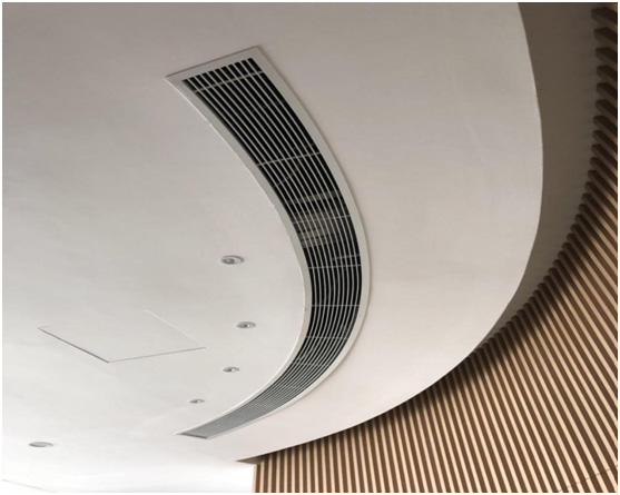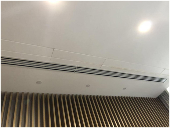 本展廳為敞開區(qū)域,空間內(nèi)沒有具體隔斷,因此在空調(diào)選型和分布位置上需要參考實(shí)際吊頂造型。本展廳原始層高為4.6米,主梁下為3.4米,現(xiàn)吊頂完成面層高為3米,頂內(nèi)層高較為充裕,我司建議使用風(fēng)管式空調(diào)放置在吊頂內(nèi),可以最大程度不影響美觀度。