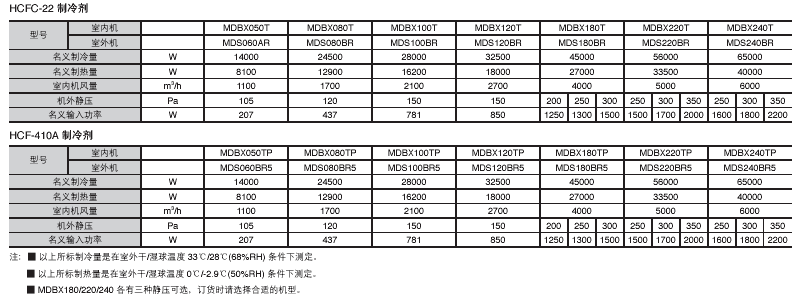 制冷劑:HCFC-22 HFC-410A