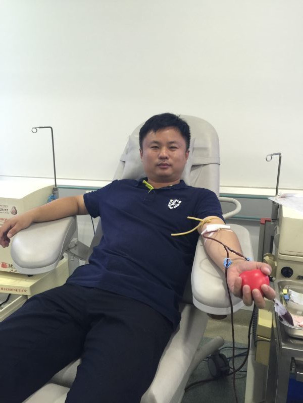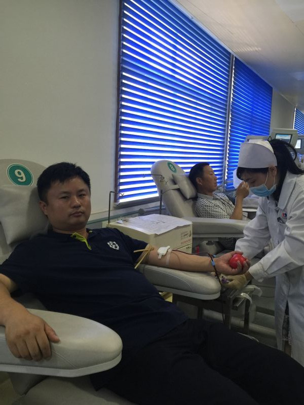 余德軍先生是上海惠馳空調(diào)電器有限公司南京分公司的總經(jīng)理,也是中心條件保障科黃愛明科長的好友。當(dāng)他從好友那里得知最近因天氣炎熱、獻(xiàn)血市民銳 減、血液庫存下降的消息后,立即表示要到血液中心獻(xiàn)血,盡自己的一份微薄之力。7月21日上午,余總經(jīng)理來到中心成分機(jī)采室,成功捐獻(xiàn)了300ml全血。 獻(xiàn)完血后他說:“這是我人生的第一次獻(xiàn)血,這次經(jīng)歷非常寶貴,我要用我的實(shí)際行動(dòng),動(dòng)員和鼓勵(lì)我的員工與我一起參加無償獻(xiàn)血活動(dòng),用自己的熱血為患者獻(xiàn)上 一份愛心,幫助他們?cè)缛栈謴?fù)健康!”樸實(shí)的語言,詮釋著大愛與奉獻(xiàn)!