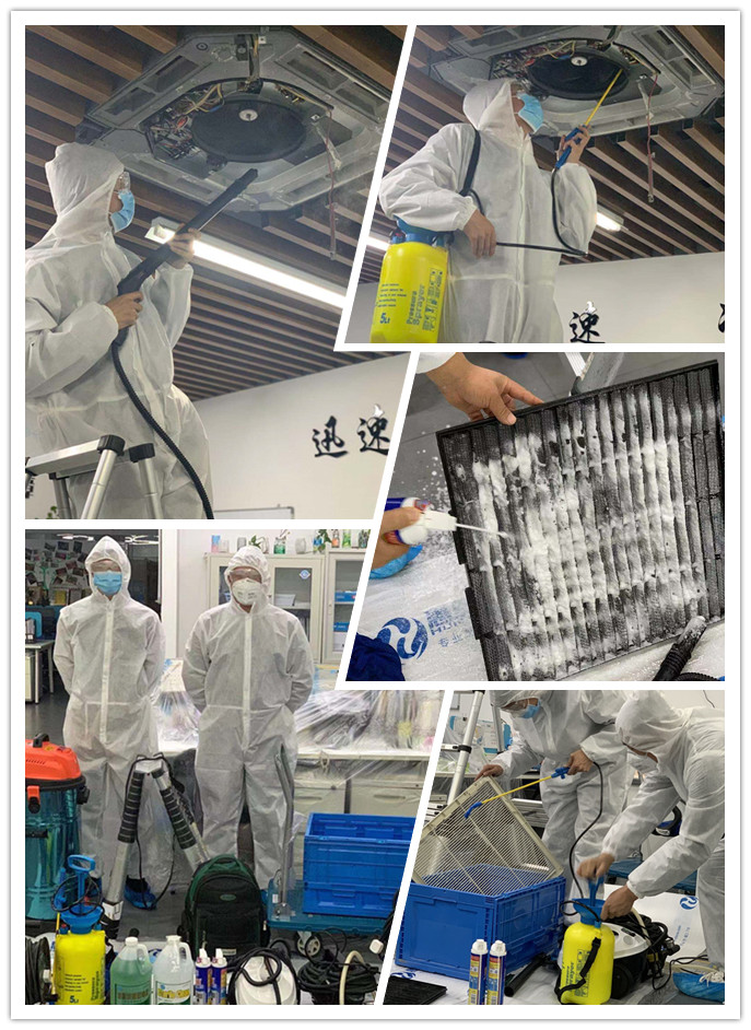 新型冠狀病毒的主要傳播途徑是通過呼吸道飛沫傳播,當(dāng)帶病毒的飛沫附著在通風(fēng)系統(tǒng)內(nèi)的顆粒物中傳播開來,污染室內(nèi)空氣,就會大大提高室內(nèi)人員感染病毒的風(fēng)險,導(dǎo)致肺炎疫情加劇。因此對中央空調(diào)進(jìn)行有效的清洗、消毒迫在眉睫。